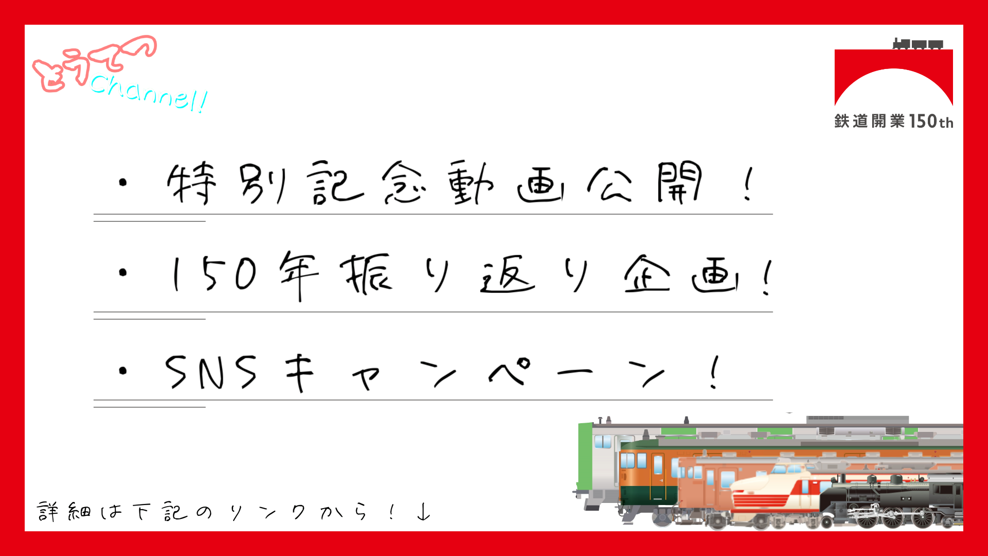 鉄道開業150周年を記念して特別企画 〔鉄道開業150周年 with とうてつChannel!〕を実施します!!